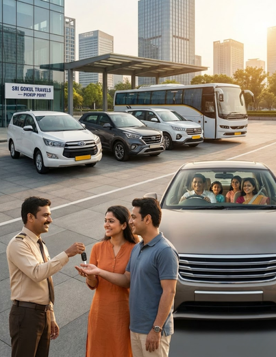 From short city rides to long-distance trips, Sri Gokul Travels ensures safe, comfortable, and reliable travel with well-maintained vehicles and experienced drivers.